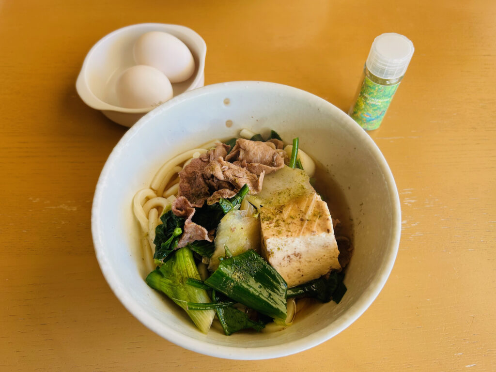 – Udon topped with sukiyaki ingredients