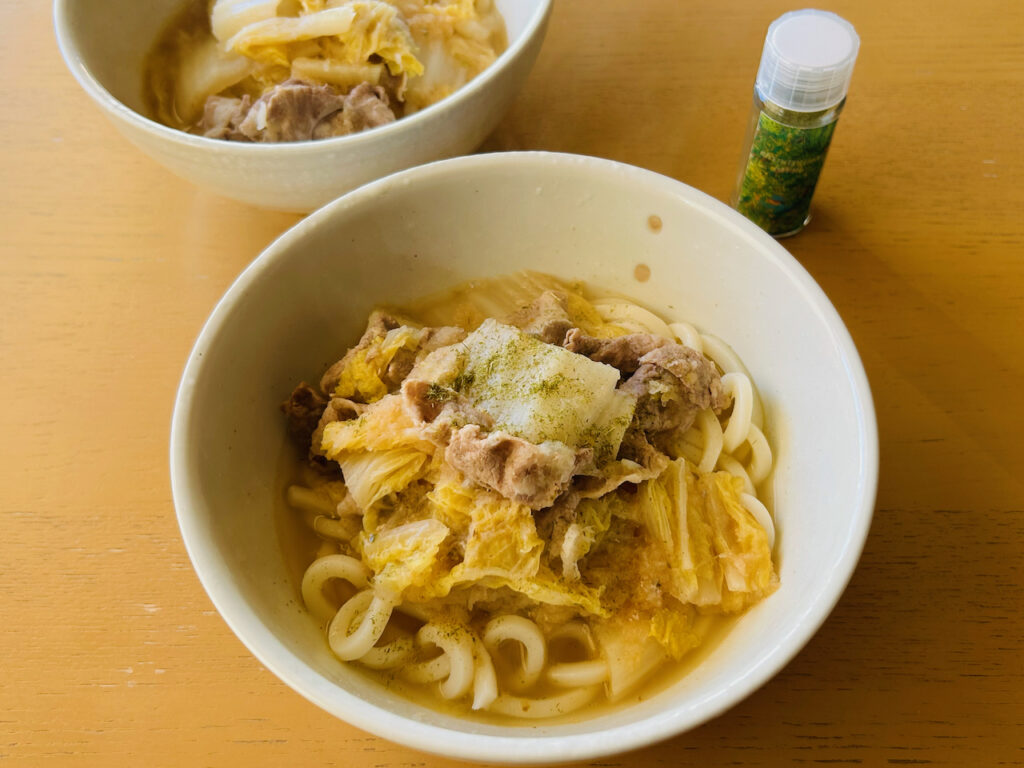 – Udon with pork, Chinese cabbage, and grated daikon