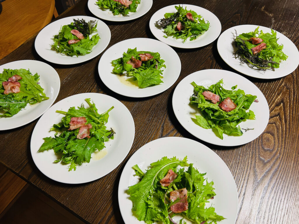葉物たっぷりのサラダはカリカリベーコン添え。