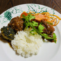 そこにご飯を入れます。分量の目安はご飯(茶碗)2杯にスープ1.5〜2カップ程度。