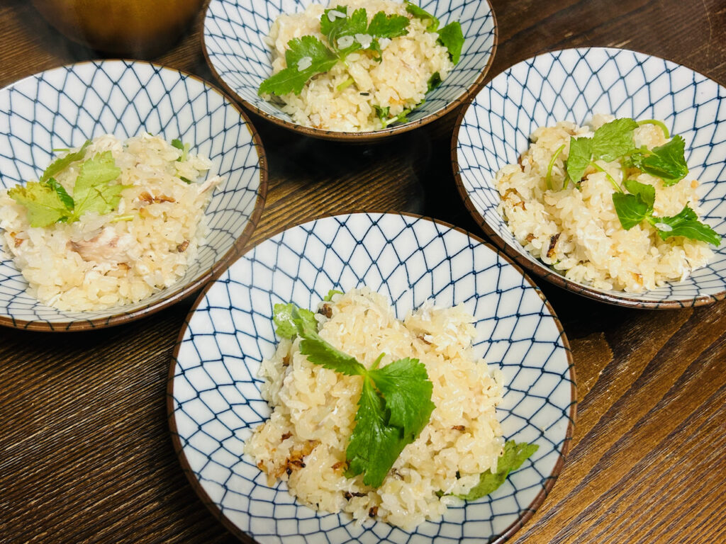 ご飯が炊き上がったら鯛を取り出し、骨や食べにくい箇所を外してから身を土鍋へ戻して、混ぜ合わせます。三つ葉を適量加えて、さらに混ぜてから、盛り付け。